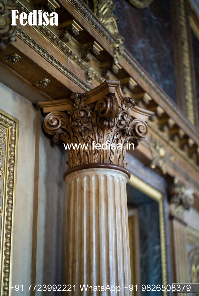Carved Wooden Pillar Design for Interiors