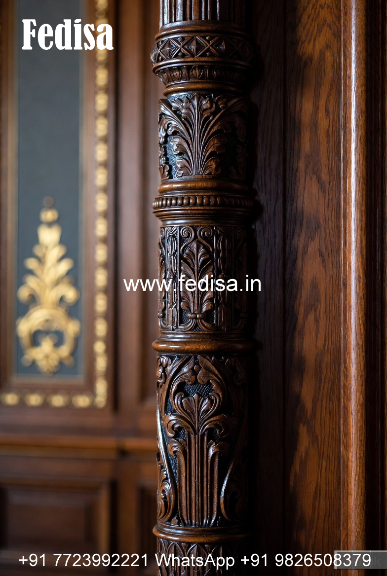 Wooden Pillar Design with Detailed Carving