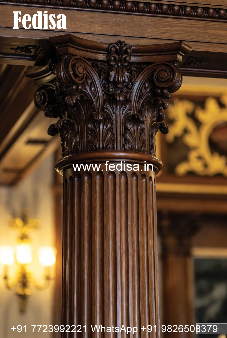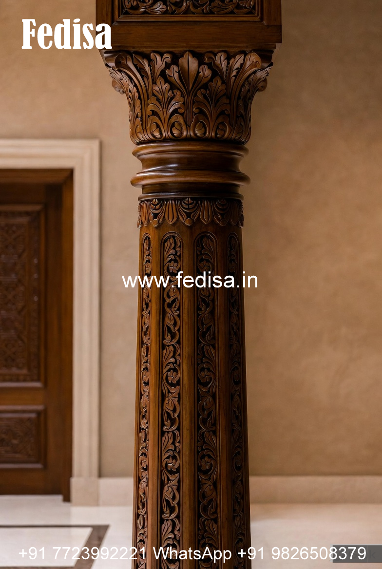 Wooden Pillar Design with Floral Carving