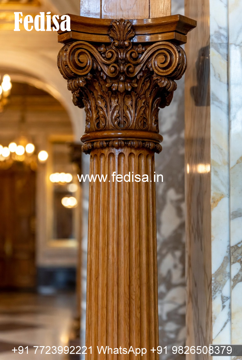Wooden Pillar Design with Fine Detailing